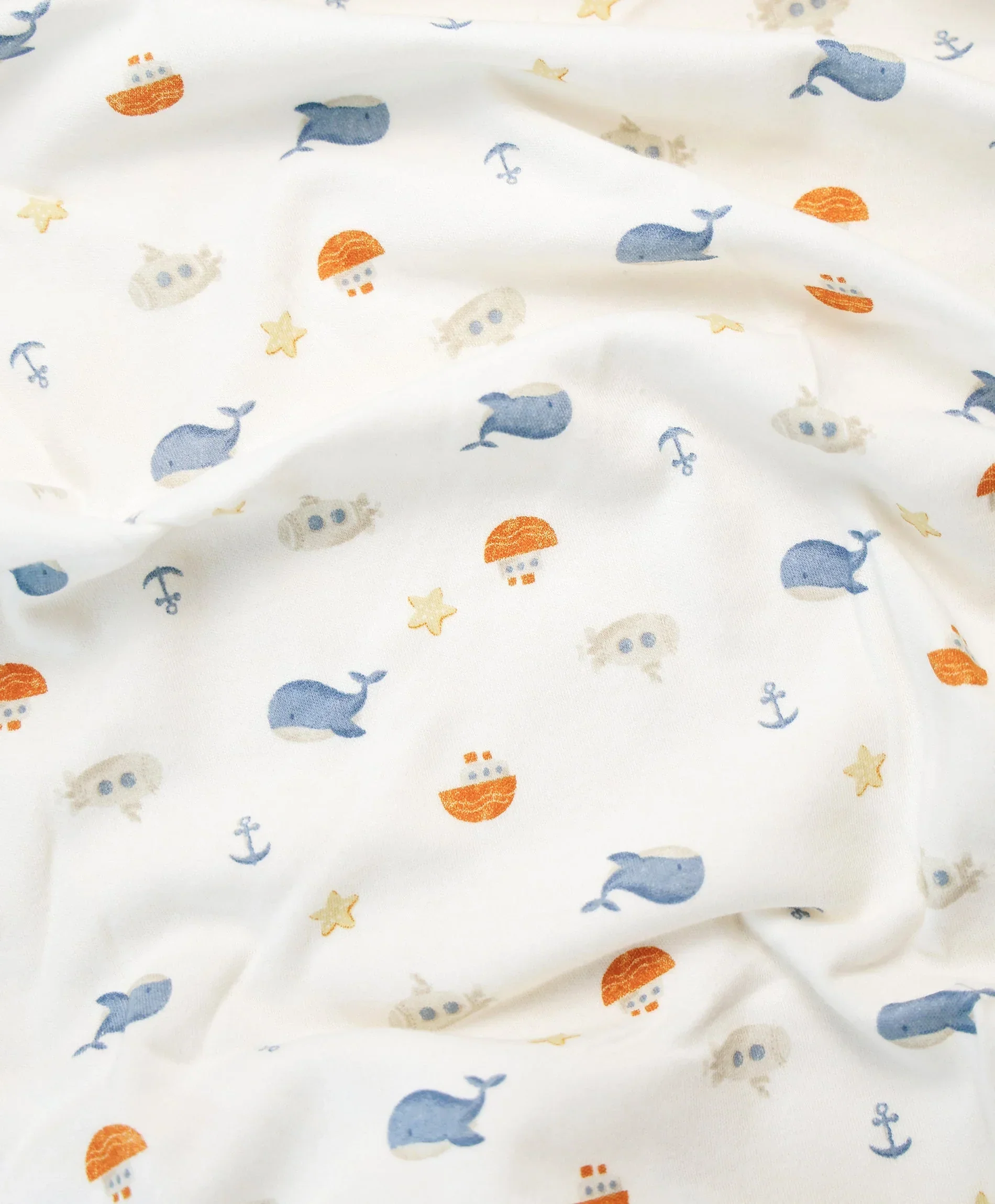Featuring our adorable prints with bounded edges, this baby blanket is soft and ideal for keeping the baby warm and swaddled in the cot, pram or car. Wrap your little one in this essential piece for newborns. Made from 100% organic cotton for your baby's delicate skin.