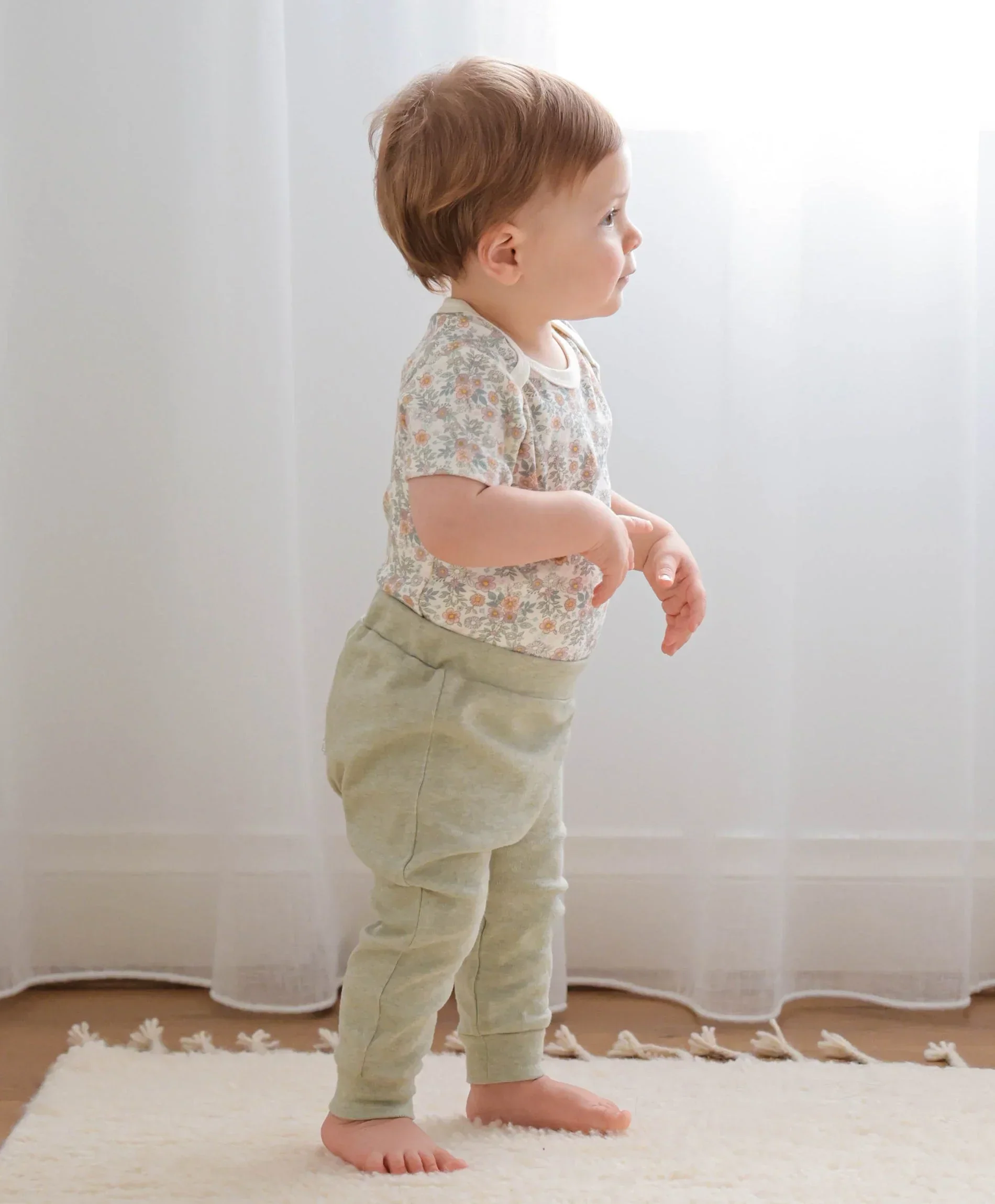 Keep your little one cosy and stylish with our Comfy Baby Leggings in a soft heather sage green. Made from breathableorganic cotton, these leggings are perfect for everyday play and snuggles. With a gentle elastic waistband and a snug-but-flexible fit, they move with your baby for all-day comfort. A wardrobe essential in a calming, gender-neutral hue.