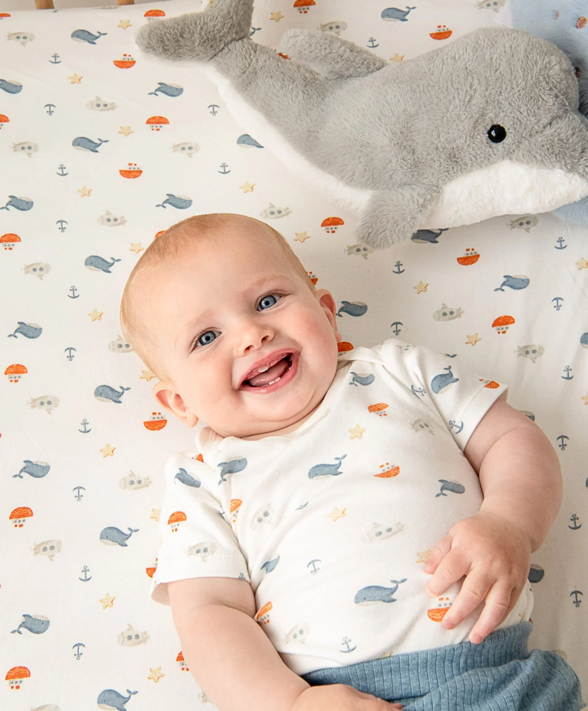 Our organic fitted sheets take parenting to a new level. They are soft, safe and gentle for your baby to sleep on. The fitted baby sheet features an elastic rim to secure it to a cot mattress, is machine washable, and is made from 100% organic cotton and dyed with non-toxic water-based dyes. Suitable for any nursery or bedroom.