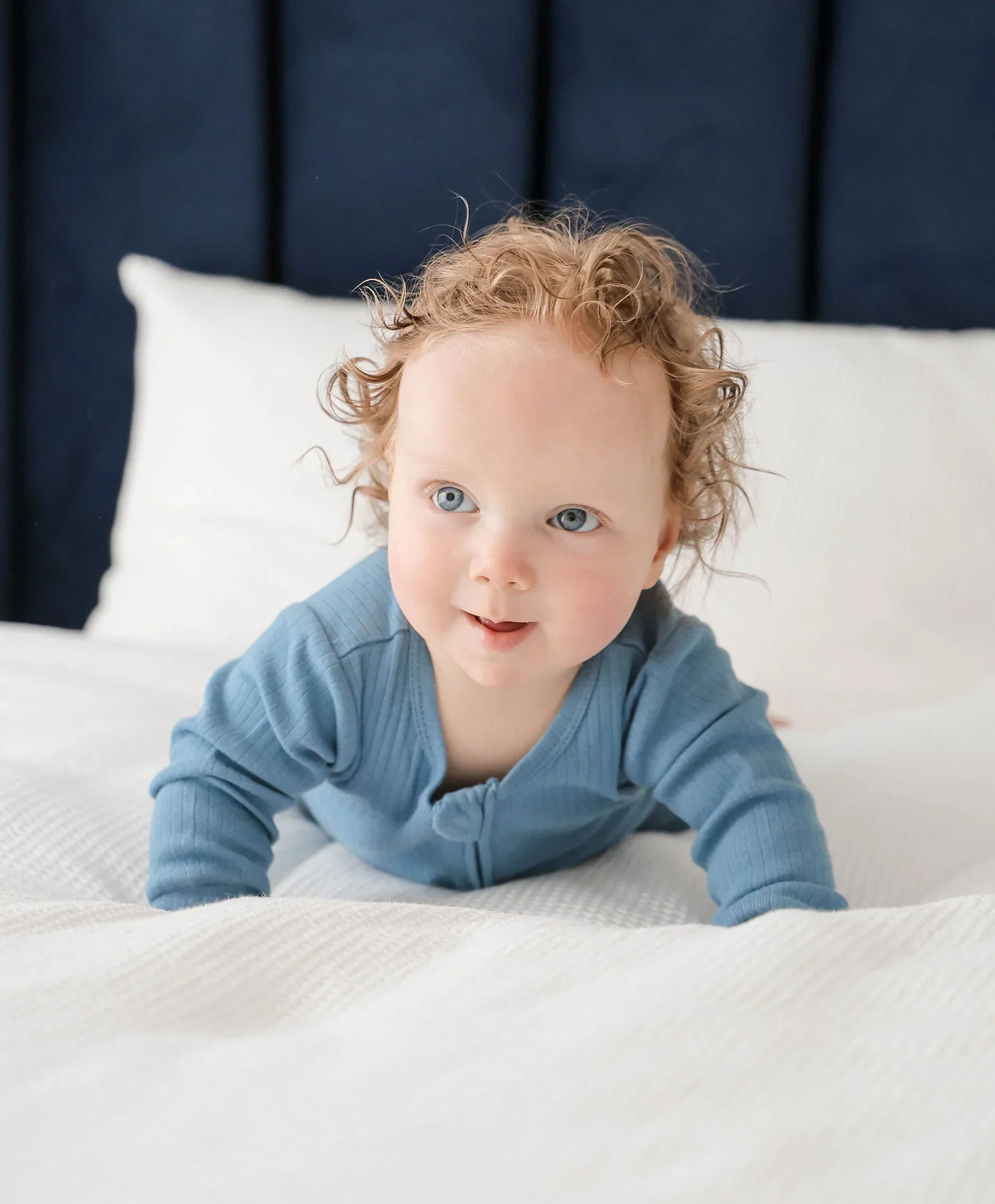 Our Growsuit is both functional and beautiful, we source only the finest organic cotton to ensure we are providing your baby with nothing but the best. Featuring a two-way zip and a safety fold for quick and easy dressing. Soft and stretchy, our growsuits are an easy-care, fuss-free option that’s easy to wear thanks to their modern, fitted style. Suitable for loungewear, daywear, birth announcements, or any occasion it may be, they make a great baby gift!