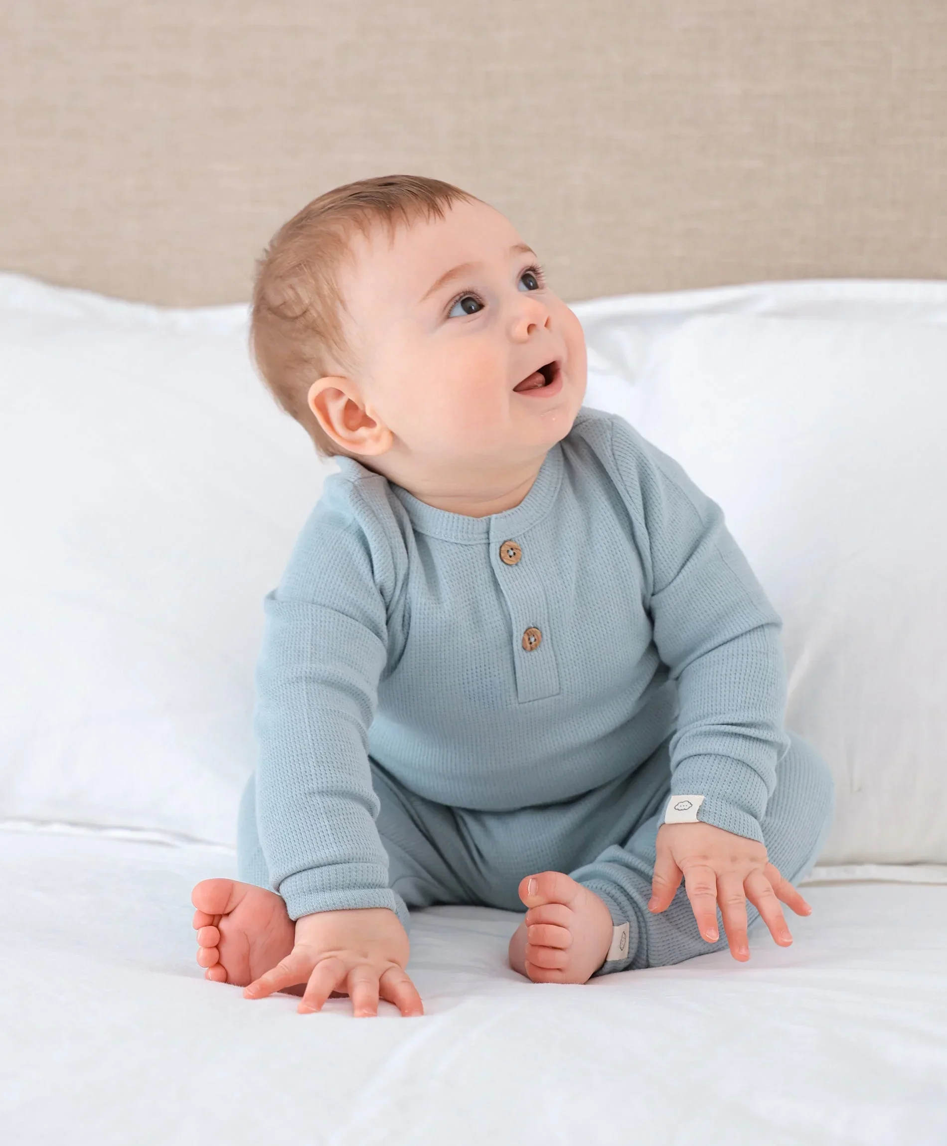 Created for crisp, cooler weather, our waffle collection is made from 100% organic cotton to keep your little one warm through spring, autumn, and winter. The classic waffle knit offers lasting durability, excellent shape retention, and a cosy, gentle feel.
